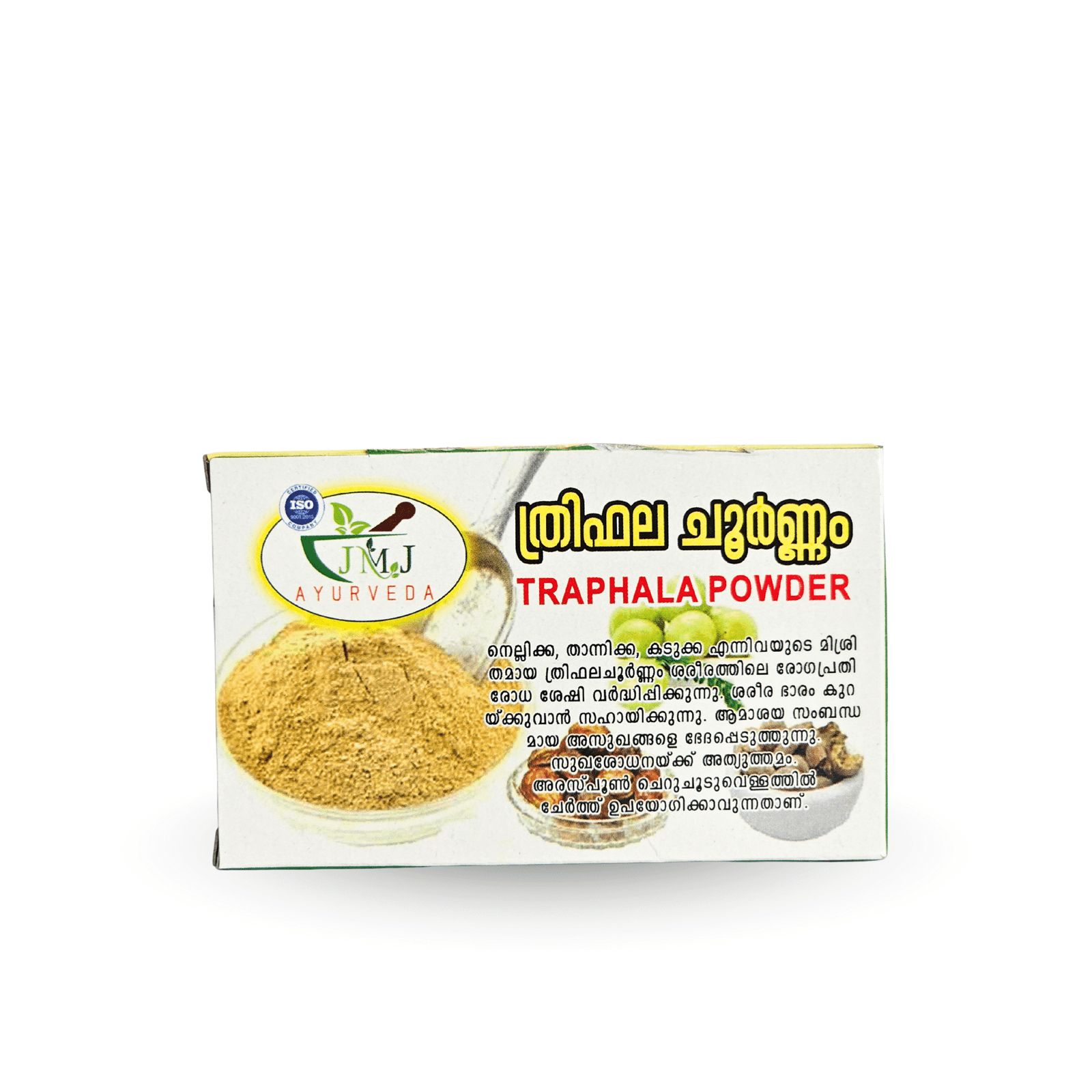JMJ Ayurveda Thriphala Choornam (35 gm) is a time-honored Ayurvedic formulation made from three potent fruits — Nellikka, Thannikka, and Kadukka. Known for its rejuvenating and cleansing properties, Thriphala helps enhance metabolism, detoxify the digestive system, and strengthen overall immunity.